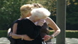 WW2: D-Day Memories: Hilaire Benbow / Sylvia Power / Ron Picken; ITNFRANCE: Normandy:EXTSylvia Cummins (Widow of Richard Cummins) laying flowers at grave (2 SHOTS)Sylvia and Helen Power (Sylvia and Richard's daughter who he never saw) at graveside (3 SHOTS)Helen Power (Daughter) interview SOT- It's very sad / His family say how lovely he was / I just have the memories