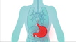 Animated expanding radio waves over a red coloured stomach on a human torso illustration.