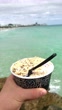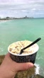 MIAMI BEACH, FLORIDA - JANUARY 20: (AUDIO OMITTED) In a point of view shot, a man holds a cup of seven grain breakfast cereal with yogurt and fresh fruit on January 20, 2022 in Miami Beach, Florida. The man is on a beach holiday trip. (Footage by Leonardo Ampuero/Getty Images UGC)