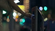 On a night-time scene, an Asian woman uses a mobile app to make payment for her parking spot, utilizing contactless and mobile banking payment methods.Focusing on a close-up shot of her hand.