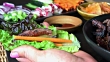 Koreanische Art Bulgogi Short Rib Salat wickeln mit Kimchee - 4K Stock-Video