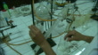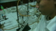 A lab technician adds liquid to a bubbling solution. - HD Stock-Video