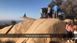 Line of tourists and influencers form waiting to take photos at Potato chip rock San Diego while a woman in blue meditates on a sunny day (Footage by Collab via Getty Images UGC)
