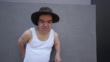 Kleiner Mann mit Cowboyhut auf der Straße - 4K Stock-Video