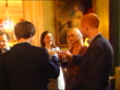 ALAN MCGEE LEAVES CREATION RECORDS:; LIB (R30079705/ITN) ENGLAND: London: Downing Street: INT CMS Alan McGee (Head of Creation Records) chatting at celebrity party GV McGee and others chatting