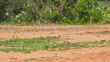 Long lens of two vulturine guineafowls (Acryllium vulturinum) walking past a spotted thick-knee (Burhinus capensis) bird while alert sitting on its eggs - 4K Stock-Video