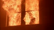 Low angle medium shot flames leaping through window from fire inside building or house - HD Stock-Video