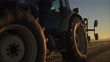 Male farmer climbing into tractor in rural agricultural field at sunrise. Shot in 8K Resolution.