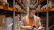 Männlicher Arbeiter, der den Lagerbestand im Distributionslager überprüft - 4K Stock-Video