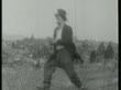 B/W 1915 man standing in grassy field throwing cannon ball at someone offscreen / feature - Stock-Video