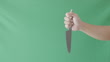 Man's Right Strong Arm Holding A Knife by His Hand Raise Up and Pointing a Knife Down to Bottom then Stubbing a Knife Down in the Air for Four Times on Green Screen Background