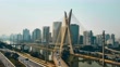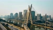 Video taken by drone flying over Marginal Pinheiros and the famous cable-stayed bridge Otavio Frias Filho, located at Sao Paulo city.