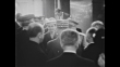 Marshall Josip Broz Tito arrives in Paris by train for state visit with his wife Jovanka Broz / shakes hands with various government officials on platform / armed guards flank the crowd as Tito exits the train station / motorcade passes guards all along its route to Elysee Palace / dozens of guards outside the palace entrance as motorcade arrives / President Rene Coty places military cross on Tito's uniform and shakes his hand / CU the eternal light at the Tomb of the Unknown Soldier / Coty and Titod lay a wreath at the tomb / CU the wreath ribbons bearing the names of the two leaders / Tito walks back to car with French Premier Guy Mollet after secret talks.