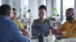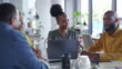Meeting, Zusammenarbeit und Laptop mit Geschäftsfrau und Mann Team sprechen oder planen im Sitzungssaal. Marketing, Strategie und Teamarbeit mit einer schwarzen Mitarbeitergruppe in einem Bürogespräch - 4K Stock-Video
