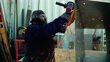Metallarbeiter mit Winkelschleifer auf einer Range Hood - 4K Stock-Video
