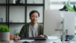 Mittlerer erwachsener Mann, der im Urlaub zu Hause arbeitet, Home Office: ein glücklicher junger asiatischer freiberuflicher Kreativer, der bequem von zu Hause aus arbeitet, Social Distancing Konzept - 4K Stock-Video