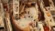 Miniature construction site from above. Crane flipping over formwork panel. Time-lapse tilt-shift toy look - 4K Stock-Video