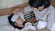 Mutter rührende Tochter Stirn Messen Temperatur, Pflege, health.4k