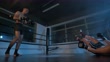 Muay Thai Boxer Körper Klettern Sprung nach unten Ellenbogenschlag in Boxring Match klopfen Gegner - 4K Stock-Video