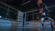 Muay Thai Boxer Körper Klettern Sprung nach unten Ellenbogenschlag in Boxring Match klopfen Gegner - 4K Stock-Video