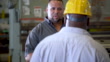 Multirassische Gruppe, die in der Fabrik arbeitet und ein Treffen hat - 4K Stock-Video