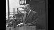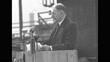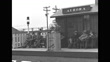WS old and new trains leaving Aurora Station / LS military soldier marching in parade / CU majorettes followed by band marching toward camera, crowd lining street / Follow wagon past camera, people standing on wagon dressed as settlers and Native Americans / Side view of crowd / Follow wagon carrying ladies wearing old style bonnets / Follow another wagon carrying family followed by cowboys on horsebacks / PAN crowd around sign 1850, guests sitting in front of Burlington sign / MS Ralph Budd of Chicago Burlington and Quincy Railroad Line and Charles G. Dawes together, on open wagon, past / WS officials sitting on the platform of Aurora train station / CU and SOT Dawes, former US Vice President: "...Ralph Budd is the world's pioneer in the introduction and successful operation of these steam line trains which marked the liaison of American railroad and beginning of its turn of its old time place in the business and social life of our country "/ WS Budd, President of Burlington Line, speaking from podium / SOT Budd: "The future of our railways depends upon the stability of our 3 point foundations, namely the public, the employees and the owners. Like all 3 point supports, the failure of one is the disastrous to the entire structure" / Note: exact day not known