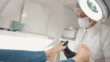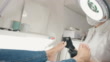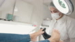 Junge Frau im Schönheitssalon sitzt zur Pediküre, Kosmetikerin behandelt Zehennägel.