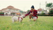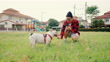 Haustierbesitzer trainiert seinen Hund auf dem Spielplatz des Dorfes. - 4K Stock-Video