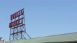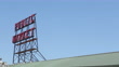 We see the Pike Place Market sign from the street level, under the sign there is the market behind the sign we can see the City of Seattle, this is the sign of the market from behind, from the docks area overlooking the city.
