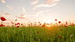 HD1080p: MEDIUM LOW ANGLE DOLLY Aufnahme des Mohnfeldes in der späten Nachmittagssonne. Auch in 4K-Auflösung erhältlich.