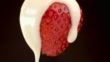 Weiße Schokoladensauce auf eine frische Erdbeere gießen - 4K Stock-Video