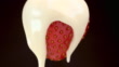 Weiße Schokoladensauce auf eine frische Erdbeere gießen