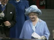 CMS Queen Mother on steps of St Paul's - Lady Fermoy in b/g - as down steps towards