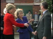 Princess of Wales opens new Childline office in London; PICTURES ARE BBC POOL540pm)ENGLAND: London: Studd St: EXTDiana, Princess of Wales (wearing red jacket with black collar - by Rifat Ozbek - & black skirt) shakes hands in meet and greet with Esther Rantzen (Childline founder and TV presenter), charity voluteers, staff and officialsINTPrincess of Wales chats to childline worker inside as Esther Rantzen stands next, as another childine staf member is on the phone taking calls.FX ARCHIVE CAS ONE & TWO 35302 37:39 TO 37:47**** RUSHES KEPT ON CR1834