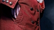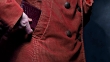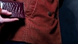 Human hand putting documents with leather cover in the pocket of rusty corduroy jacket