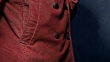 Menschliche Hand, die Dokumente mit Lederbezug in die Tasche der rostigen Cordjacke steckt