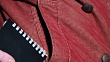 Notizblock in menschlicher Hand, der in die Tasche der rostigen Cordjacke steckt