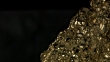 Makro-Dolly-Aufnahme von Pyritmineral auf schwarzem Hintergrund