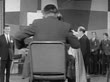 Queen Elizabeth walks into the Crackerjack studio and is greeted by Eamonn Andrews during her tour of BBC Television Centre in honour of the BBC's 25th anniversary; 1961. (BBC News - 306/61/03 - 02/11/1961 - AEXZ288W)
