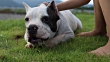 erholsame Zeit der american Bully Hund und kleinen Besitzer