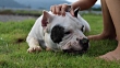Erholsame Zeit der american Bully Hund und kleinen Besitzer - HD Stock-Video