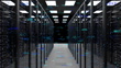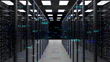 3d rendering server racks in modern data center with d flowing particles and digital animation, Advanced cloud computing, Server Room concept, Network Server concept, Supercomputer concept, Artificial Intelligence concept