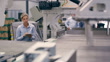 Robotik, Tablet und Frau in Fabrik für Automatisierung, futuristische Technologie und Industrie. Lager, Roboter und Ingenieur mit Maschine für Produktionslinie, industrielle Programmierung und CNC-Fertigung. - 4K Stock-Video
