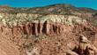 Aerial establishing shot of the desert landscape at Ghost Ranch near Abiquiú, Rio Arriba County in north central New Mexico. The ranch was the home of artist Georgia O'Keefe.