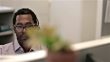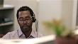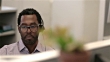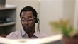 Savvy office worker pitches to client on headset (dolly shot) - HD Stock-Video