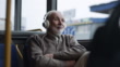 Senior Mann hört Musik auf Kopfhörer nen im Bus - 4K Stock-Video