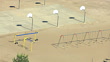 MS AERIAL Shot of empty playground at Northside Elementary School with bright sky / Fallon, Nevada, United States - HD Stock-Video