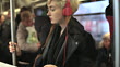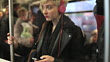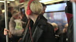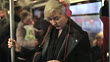 MS TS Shot of Woman riding commuter train at rush hour / Berlin, Germany - HD Stock-Video