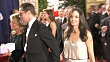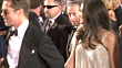 2009 GOLDEN GLOBES AWARDS RED CARPET: side angle, MCU- Brad Pitt and Angelina Jolie walking red carpet: Angelina smiles, waves and nods as Pitt looks in opposite direction