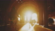Silhouettenmenschen, die im Tunnel unter dem Rijksmuseum Fahrrad fahren - 4K Stock-Video